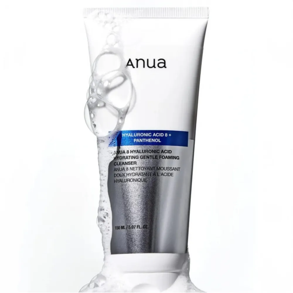 ANUA 8 Hyaluronic Acid Hydrating Gentle Foaming Cleanser 150 ml — is a gentle foaming cleanser designed for daily cleansing and deep hydration of the skin. The product effectively removes impurities, excess sebum, and makeup residues without causing dryness or disrupting the hydrolipid barrier. Thanks to its light, airy texture, the foam gently cleanses even sensitive skin, leaving it soft, fresh, and hydrated. It contains a complex of 8 types of hyaluronic acid that works on different levels of the skin, saturating it with moisture and retaining it throughout the day. Suitable for all skin types, especially dry, dehydrated, and sensitive skin.