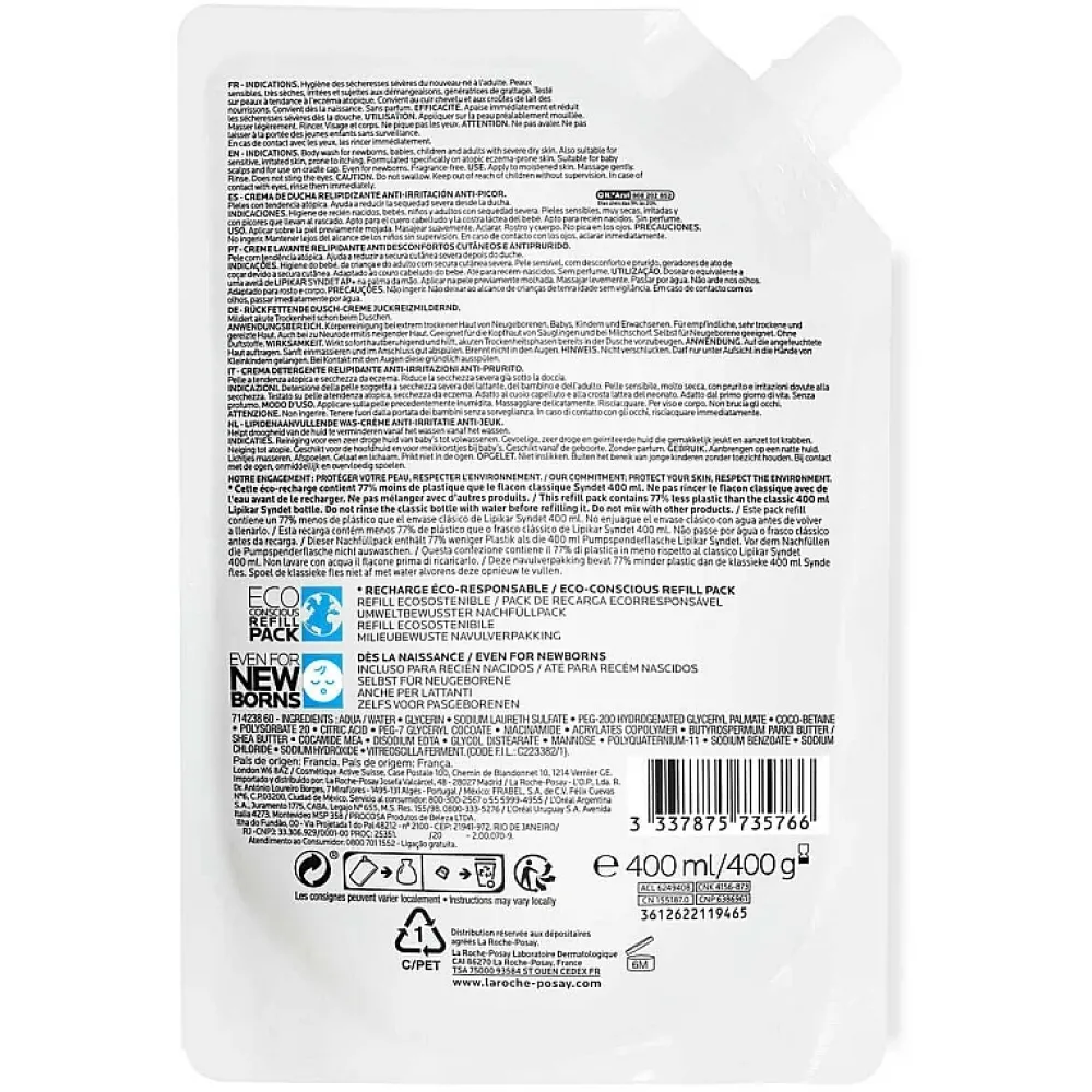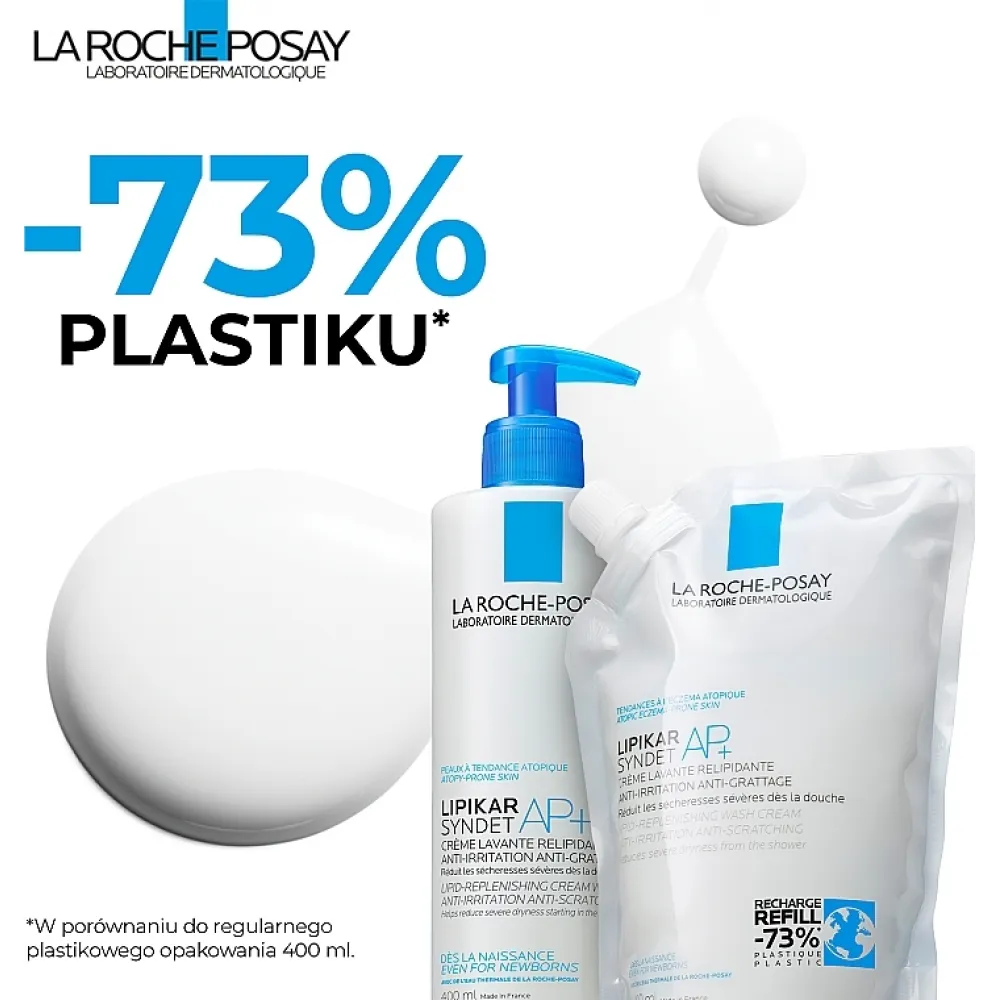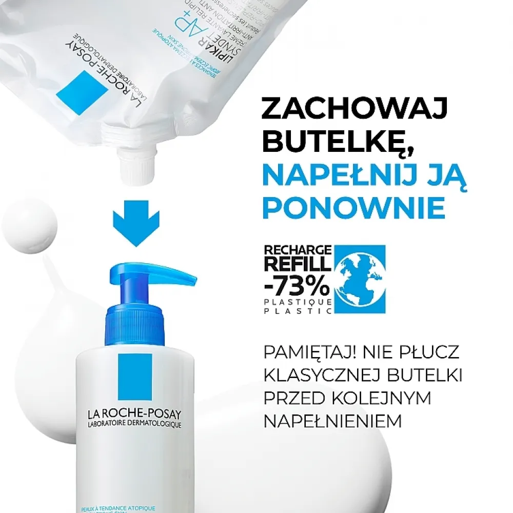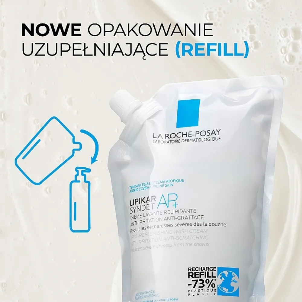 This refill pack for Lipikar Syndet AP+ contains 73% less plastic than the standard 400 ml packaging. Please ensure not to wash the standard packaging prior to refilling it with this pack's contents, and avoid mixing with any other products.