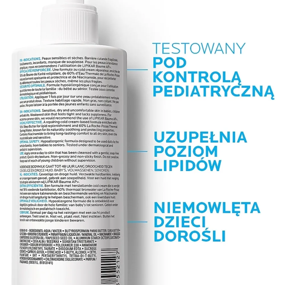 The Lipikar milk, a deeply moisturizing product developed by La Roche-Posay's scientific center, is designed for the intensive restoration of extremely dry and sensitive skin.