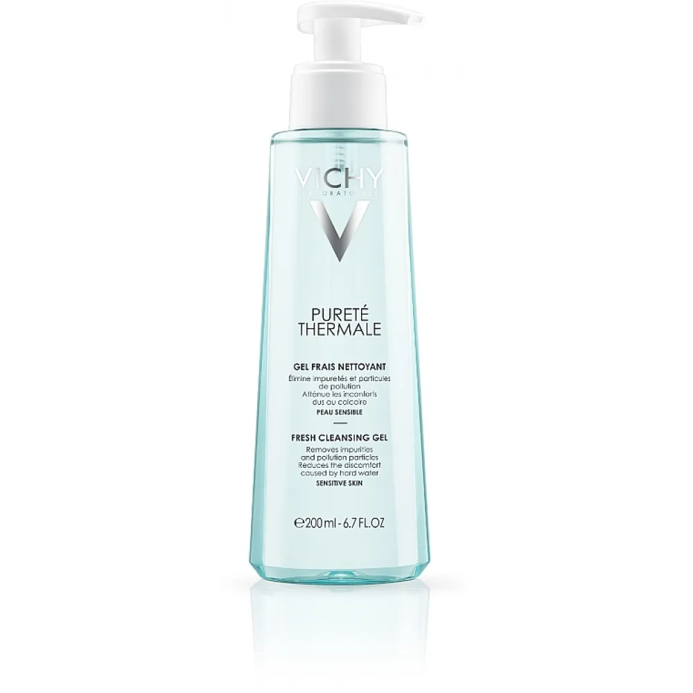 Vichy Pureté Thermale Cleansing Gel is a hypoallergenic cleansing product specially designed for sensitive facial and eye skin. It effectively removes impurities, makeup, and dust particles without causing dryness and tightness. The formula is enriched with Vichy thermal water, which strengthens the skin's protective barrier and promotes its hydration.