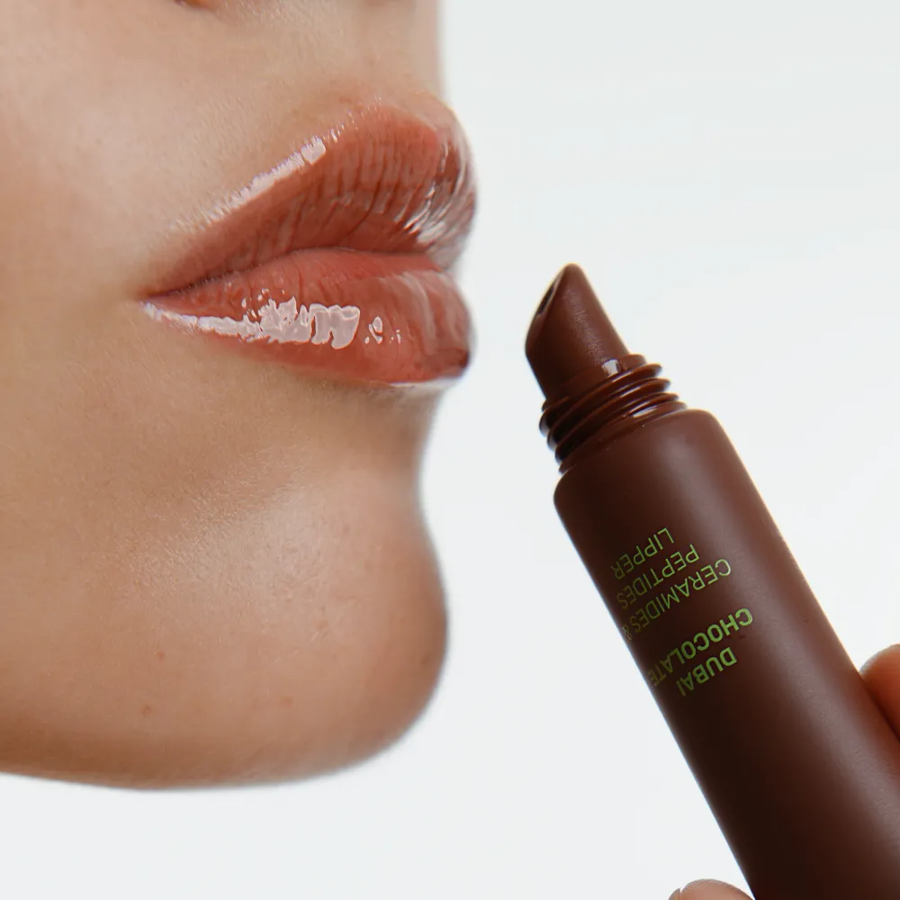 Błyszczyk do ust „Dubajska czekolada” LIPSS Lipper Dubai Chocolate — to produkt stworzony w celu zwiększenia objętości ust i ich długotrwałego nawilżenia. W skład błyszczyka wchodzi aktywny kompleks z peptydem mimetycznym, który stymuluje naturalne zwiększenie objętości ust. Efekt użycia produktu ma charakter kumulacyjny — objętość ust stopniowo się zwiększa i utrzymuje się na długo. Błyszczyk zapewnia ustom miękkość i intensywne nawilżenie. Produkt ma czekoladowy odcień i przyjemny zapach dubajskiej czekolady.