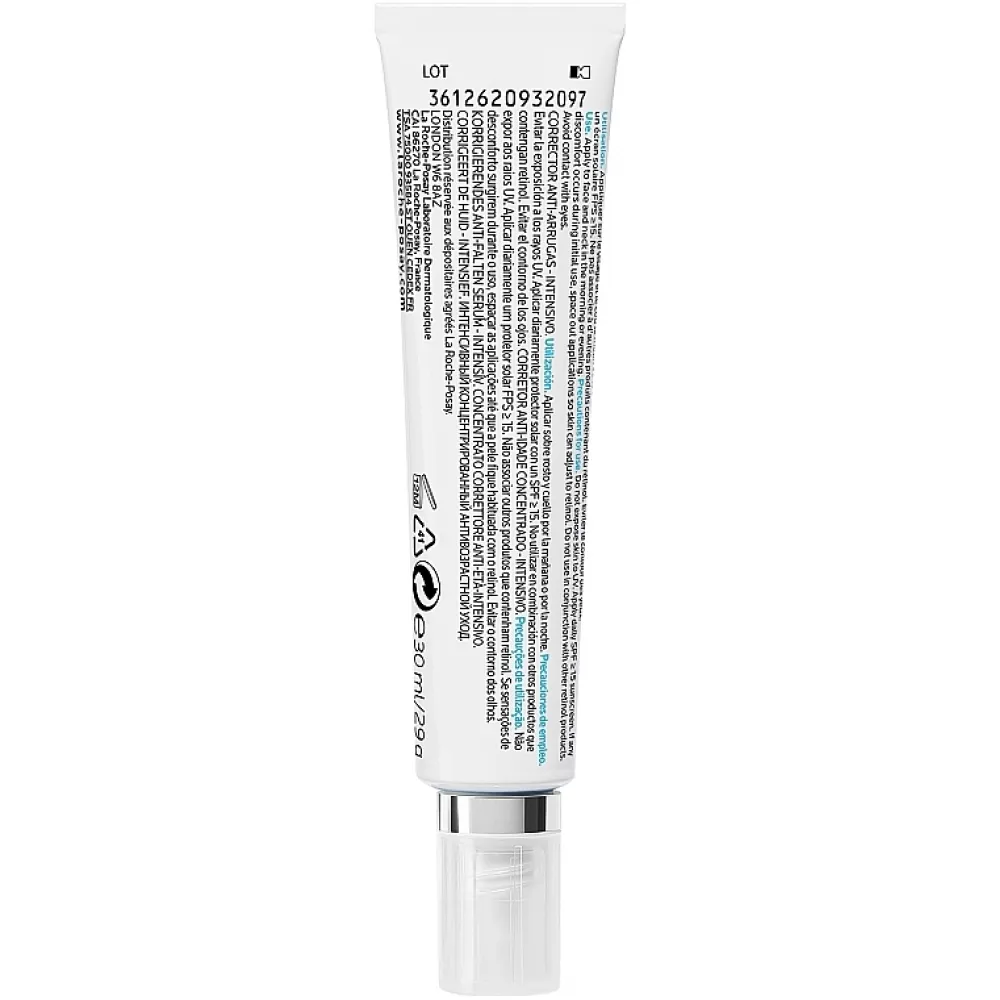 Intensywny przeciwstarzeniowy korygujący nawilżający koncentrat do skóry wokół oczu marki La Roche-Posay zapewnia skuteczną pielęgnację delikatnej strefy okołogałkowej. Ten produkt działa kompleksowo — zmniejsza zmarszczki, cienie, oznaki zmęczenia, wygładza, nasyca życiodajną wilgocią i natychmiast odświeża naskórek. Zrównoważona formuła kosmetyku zawiera aktywne składniki, które przeciwdziałają fotostarzeniu, wyrównują mikrorelief i ton skóry, a także utrzymują jej optymalne nawilżenie.