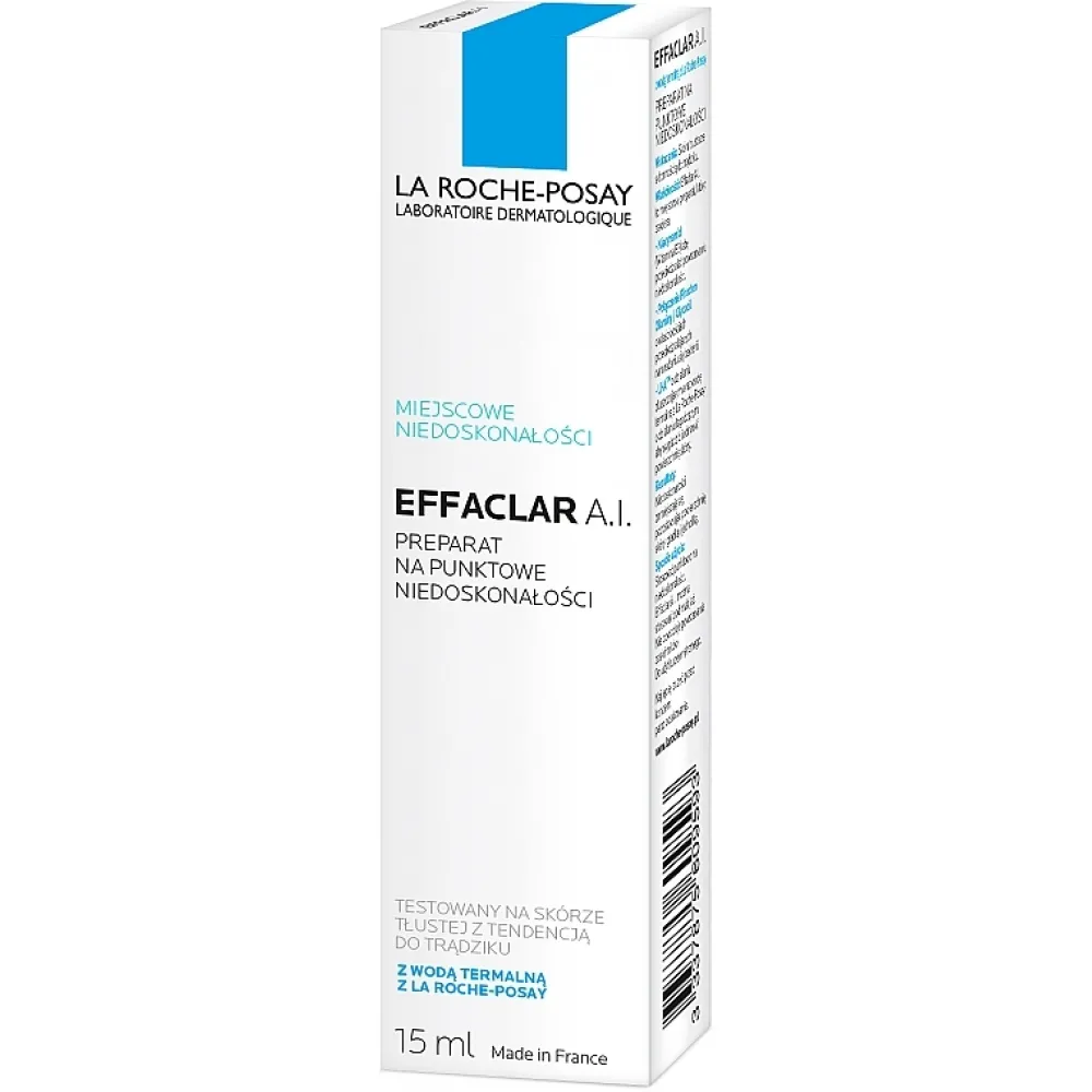Czasami stany zapalne i pryszcze pojawiają się zupełnie niespodziewanie, zwłaszcza na tłustej i problematycznej skórze. Dlatego eksperci marki La Roche-Posay stworzyli specjalny korektor miejscowy Effaclar A.I., który skutecznie przyspiesza gojenie się niedoskonałości. Zawiera on ekskluzywne połączenie pirokton olaminy i glykacylu. Hamują one aktywność bakteryjną. Produkt jest również wzbogacony niacynamidem, który łagodzi stany zapalne i przyspiesza gojenie.