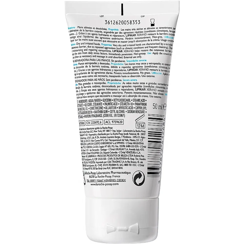 La Roche-Posay Lipikar Xerand — regenerujący krem do rąk, przeznaczony dla suchej, uszkodzonej i podrażnionej skóry. Krem intensywnie odżywia, zmiękcza i odbudowuje ochronną barierę hydrolipidową skóry, chroniąc ją przed negatywnym wpływem czynników zewnętrznych (zimno, częste mycie, chemia gospodarcza). Szybko się wchłania, nie pozostawia tłustej ani lepkiej warstwy. Odpowiedni dla dorosłych i dzieci od 3 lat. Bez parabenów.
