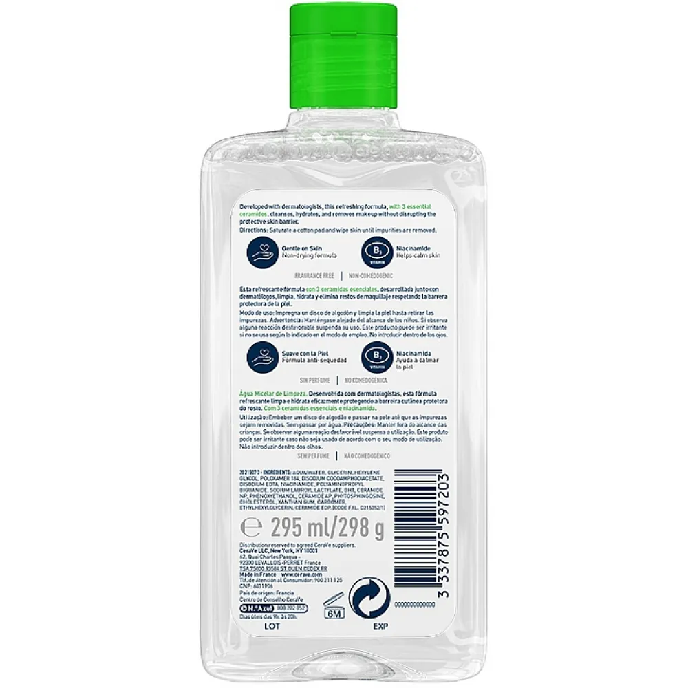Dokładne i delikatne usuwanie makijażu w zaledwie kilka sekund. Oczyszczająca woda micelarna z efektem nawilżającym CeraVe Cleansers – to trzy korzyści w jednym produkcie. Delikatnie usuwa nadmiar sebum i makijaż, nawilżając skórę. Usuwanie makijażu i oczyszczanie skóry stanie się Twoim ulubionym rytuałem.