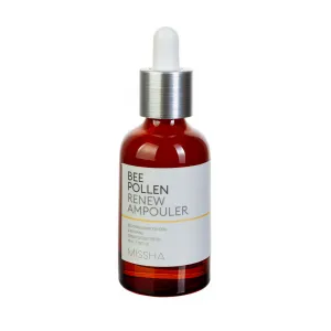 Missha Bee Pollen Renew Ampoule Skin Toner Ампульний тонер на основі бджолиного пилку, 150 мл - інтенсивно зволожує, тонізує і живить дерму, підвищуючи її пружність і еластичність. Активна формула косметичного продукту на основі меду та бджолиного пилку ефективно ліквідує ознаки втоми шкіри, покращує її стан після довгого і насиченого дня. Екстракт зеленого прополісу нейтралізує запалення, усуваючи їх осередки. Екстракт дамаської троянди вирівнює тон, висвітлюючи його і наповнюючи енергією. Екстракт ромашки має заспокійливу, бактерицидну і протимікробну дії. Екстракт едельвейса помітно покращує мікрорельєф шкірного покриву. Тонер створений з використанням запатентованої технології Coresome Delivery Mechanism, яка забезпечує максимально глибоке проникнення рослинних компонентів. Засіб має легку парфумерну композицію з нотами ромашки, іланг-ілангу і троянди.