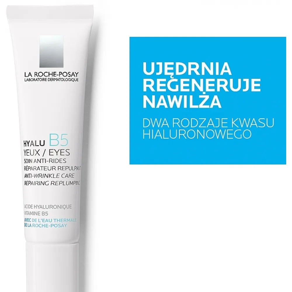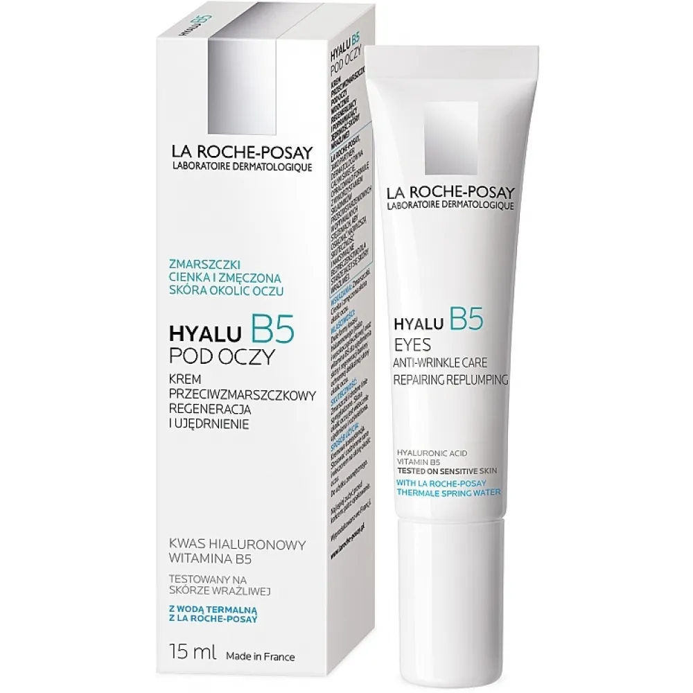 Дія збалансованих формул косметичних засобів із серії Hyalu B5 спрямована на забезпечення оптимального зволоження, боротьбу з в'ялістю та вдосконалення текстури епідермісу. Завдяки наявності таких активних компонентів, як вітамін В5 і два види гіалуронової кислоти, дерматологічний крем від професійної команди майстрів краси французького бренду La Roche-Posay ефективно коригує зморшки та відновлює природну пружність чутливої шкіри навколо очей.