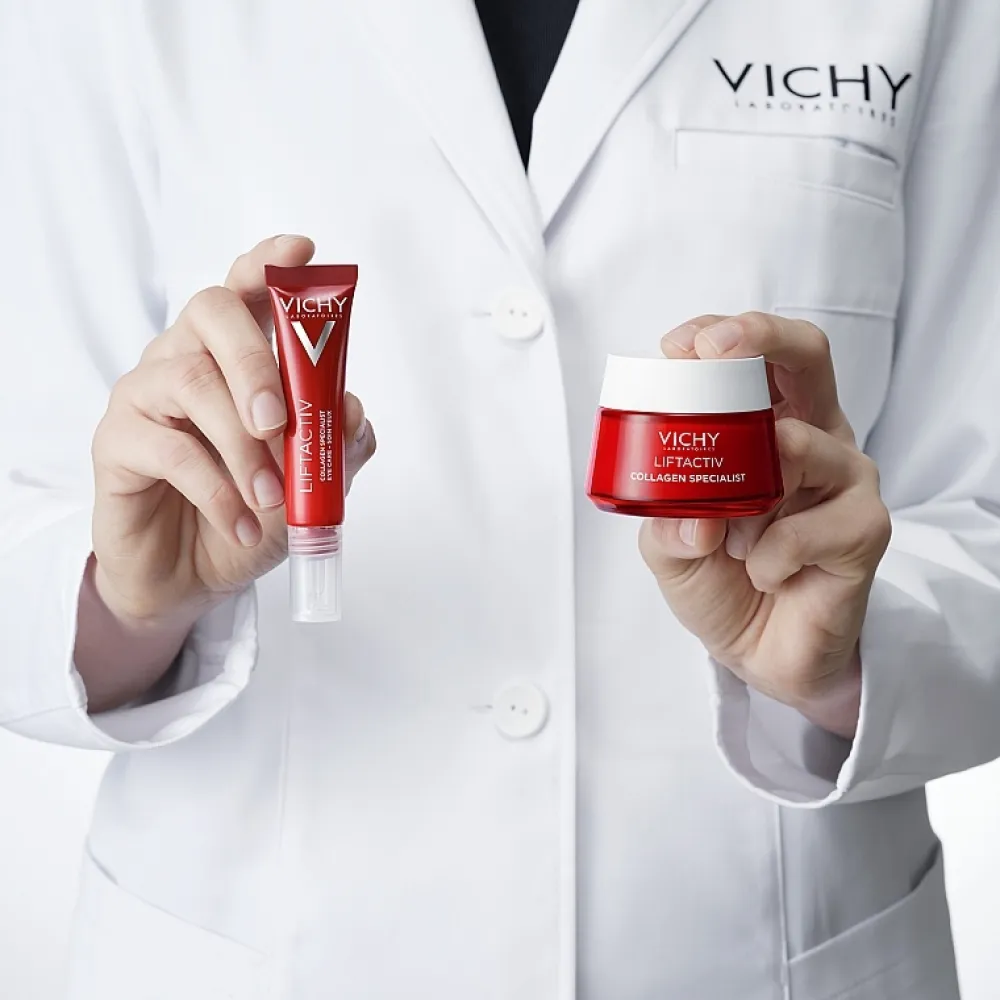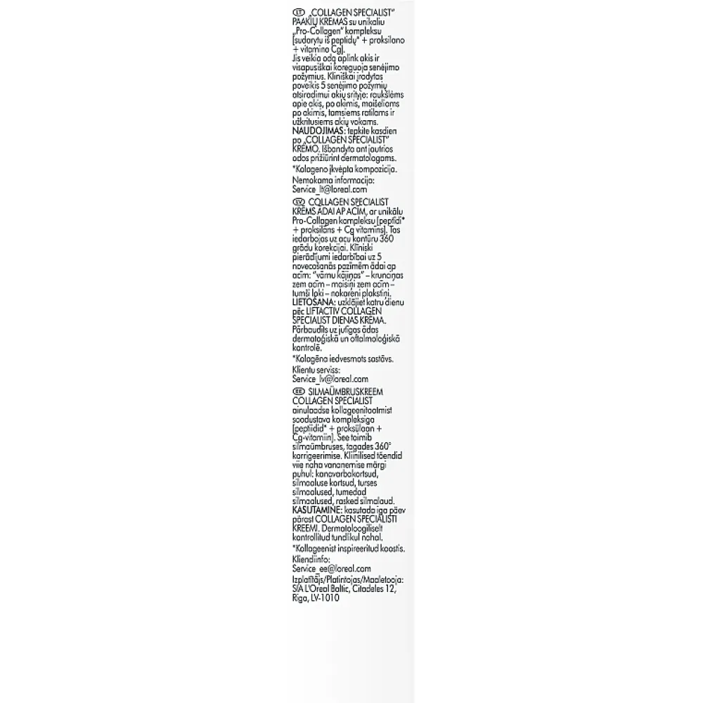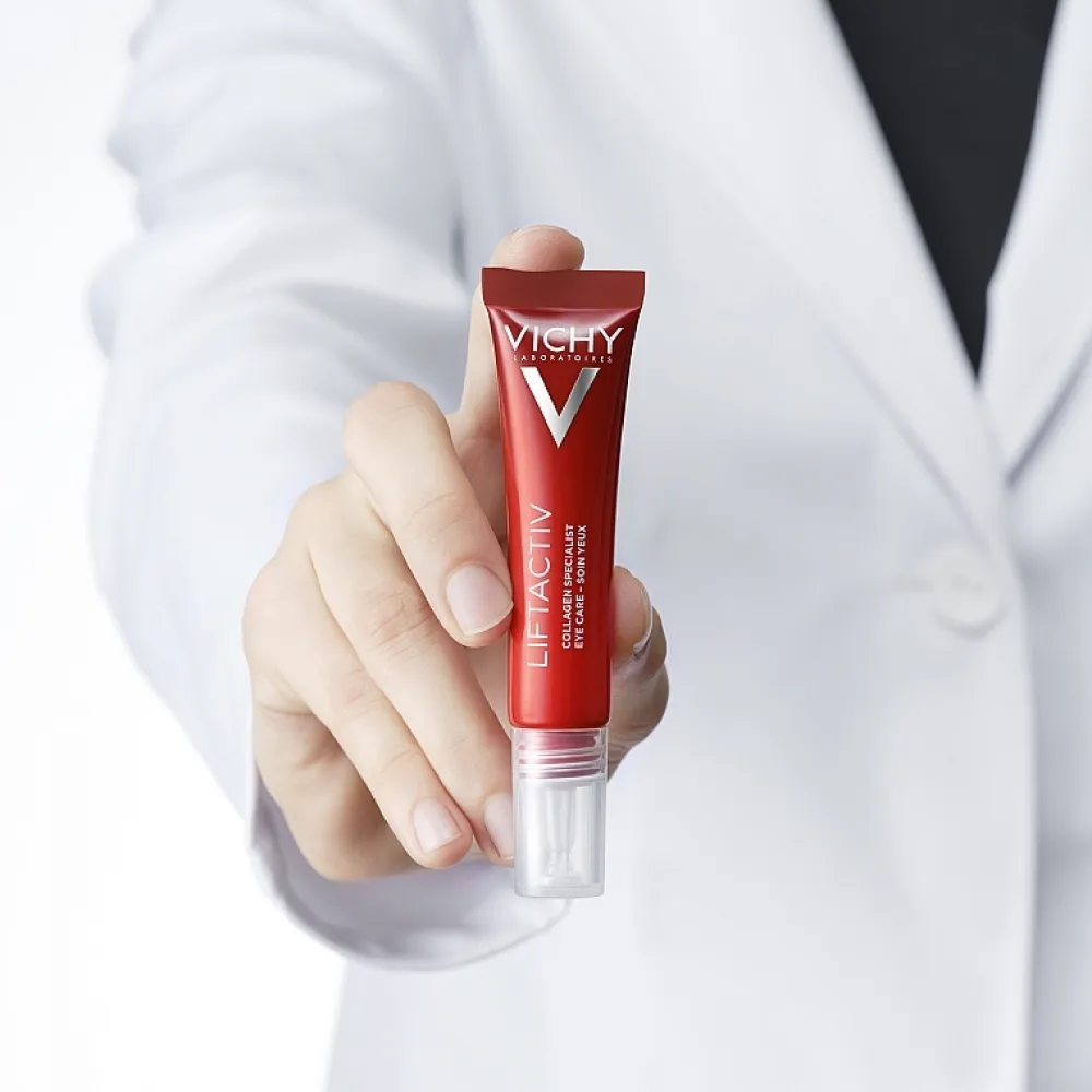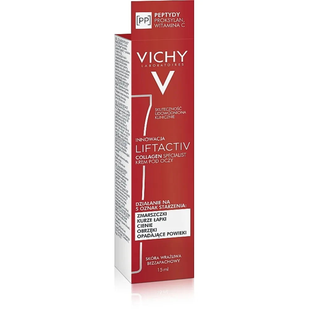 Крем Vichy Liftactiv Collagen Specialist Oogcrème — антивіковий догляд для шкіри навколо очей, спрямований на корекцію 5 ознак старіння: зморшки, набряки, темні кола, обвисання повік і втрату пружності. Формула збагачена Pro-Collagen Complex, стимулює синтез колагену, зміцнює шкіру та покращує її щільність. Підходить для чутливої шкіри та не містить ароматизаторів.