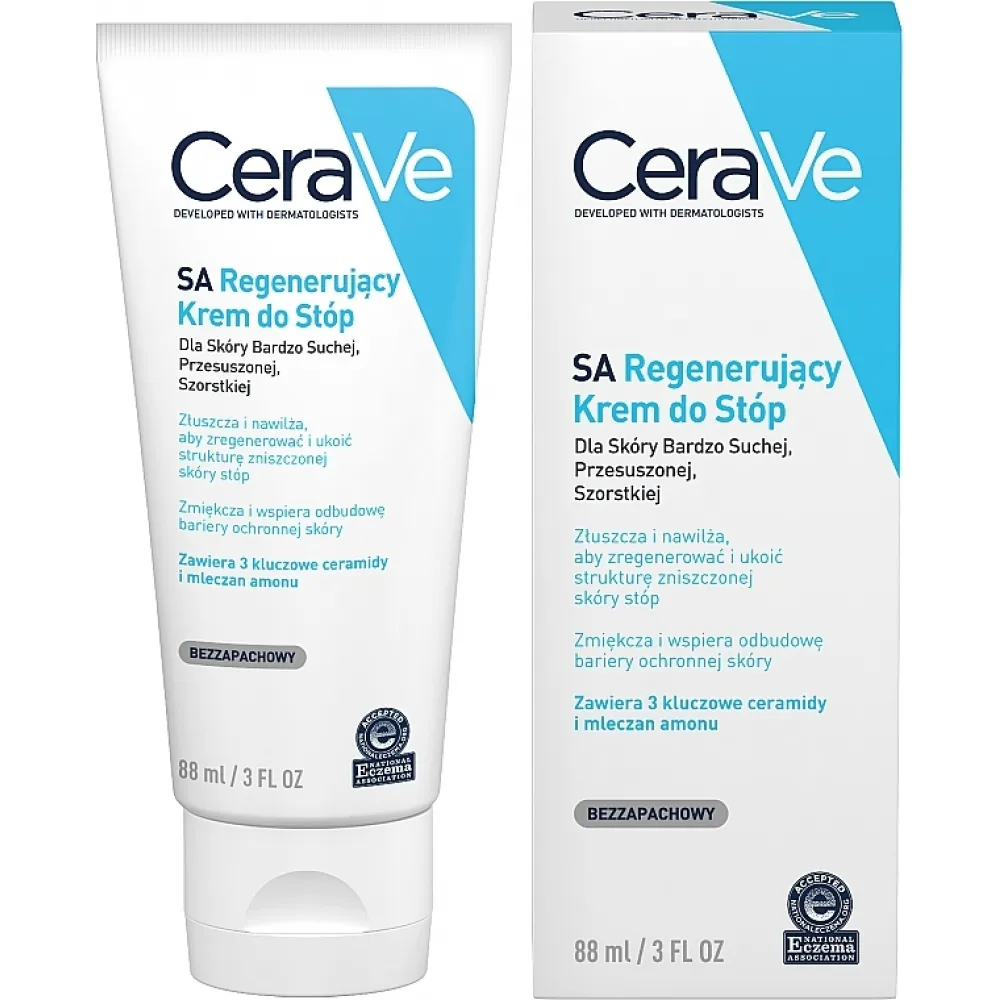 Ноги майже весь день заковані в взуття, яке часто тисне, шкіра стає пересушеною і загрубілою. Тому регулярно забезпечуйте їм заслужений догляд. Відновлюючий крем для ніг CeraVe SA з саліциловою кислотою інтенсивно відновлює суху шкіру та пом'якшує потріскані ділянки.