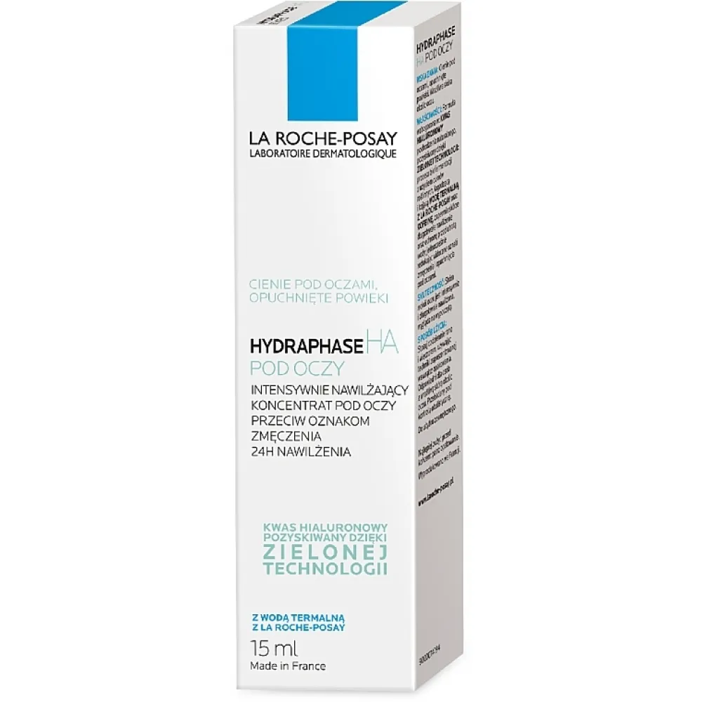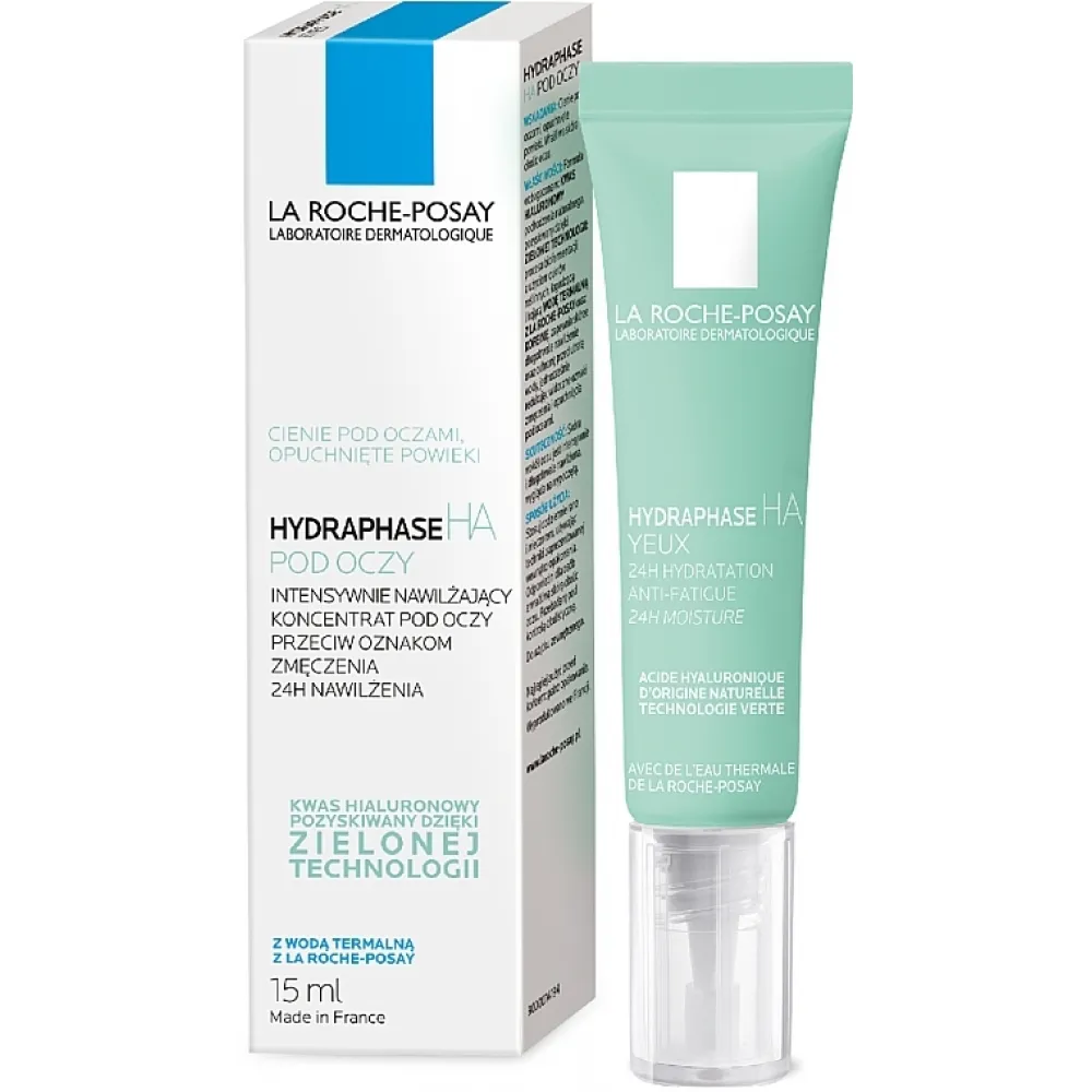 Інноваційний продукт для високоефективного догляду за шкірою навколо очей! La Roche-Posay Hydraphase HA Eyes — це концентрований гель з ультралегкою текстурою, який заснований на гіалуроновій кислоті з низькою молекулярною масою, завдяки чому забезпечує більш глибоке зволоження епідермісу. Засіб створено з використанням «зеленої» технології. Гіалуронова кислота добута шляхом двоетапного процесу: перший — її отримання з глюкози пшениці біоферментаційним способом, другий — її осадження з використанням біоетанолу без хімічних компонентів. Тестуванням підтверджено: гель зволожує шкіру на 24 години.